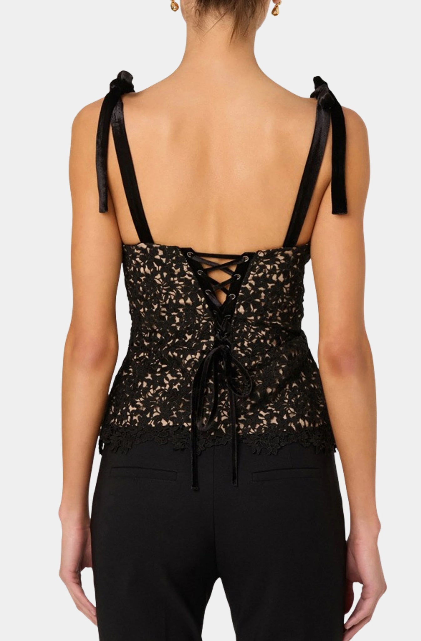 Captivate the crowd with our Donne Top. This stylish piece features elegant bow-tied straps and a sophisticated lace-up back, offering a unique twist on a classic design. Perfect for any occasion, this top effortlessly complements any ensemble, making it a must-have for fashion-forward individuals.