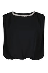 The Monroe Top, reimagined with an embellished neckline, designed with a relaxed boxy fit, finished with flattering pleating details at the shoulders. Style it with a wide leg pant for evening elegance—or wear it with jeans for a cool night-out look.
