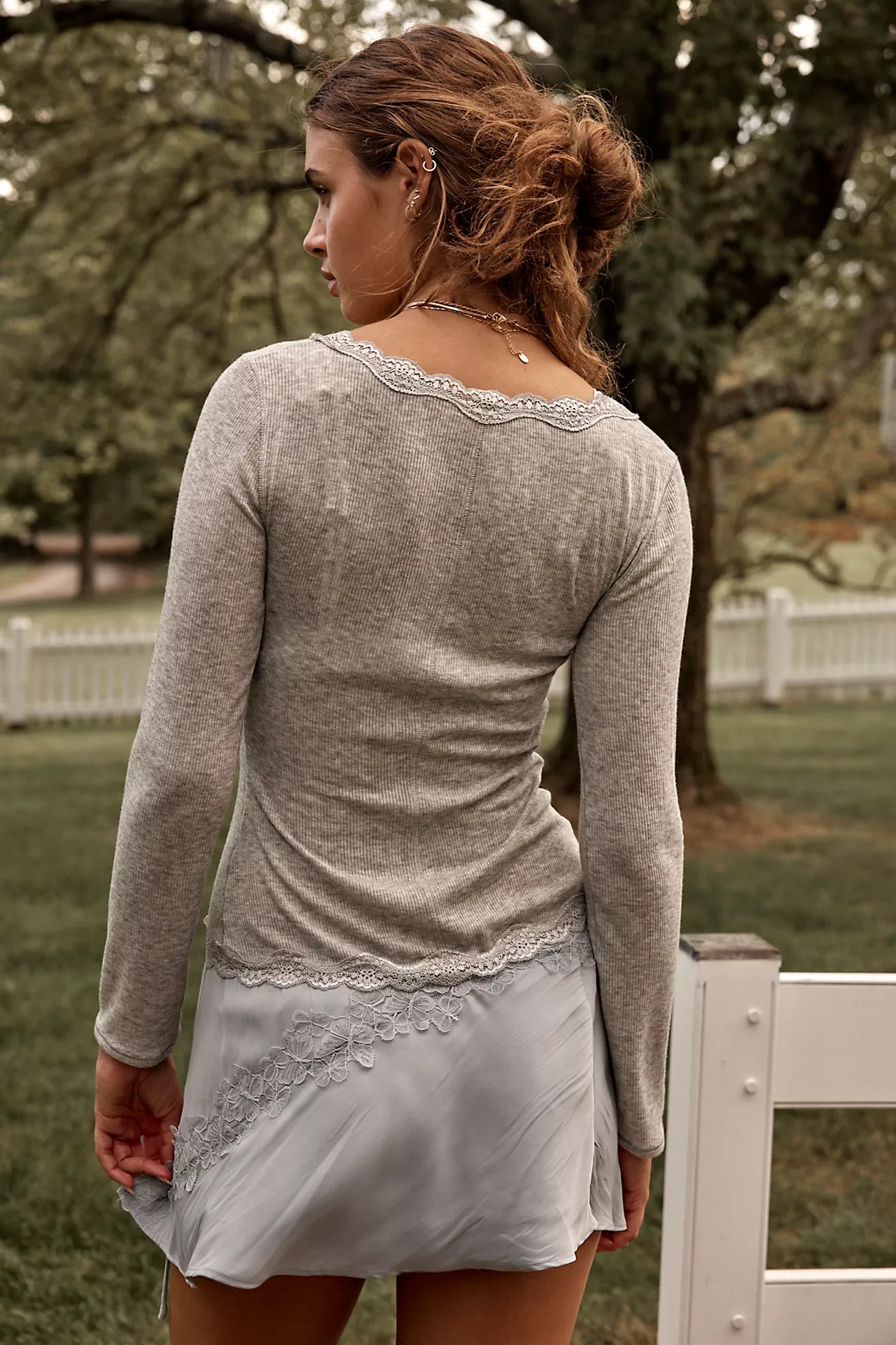 Achieve effortless style in this comfy cardi from Intimately, featured in a soft ribbed fabrication with lacy trim and dainty button closure.