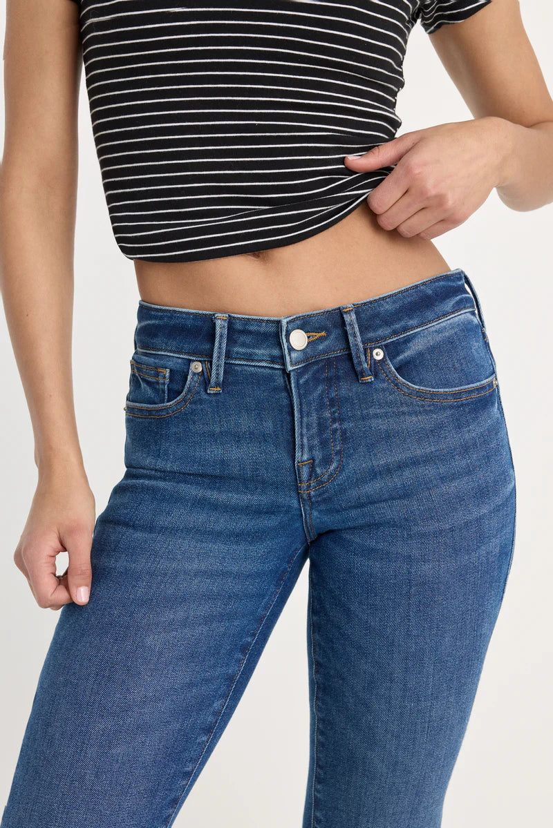 The new low-rise. A classic slim silhouette with a low-rise waist, close fit, and subtly flared bootcut legs. Made from our premium power stretch denim, they'll hold their shape with extra stretch and easy, all-day comfort.