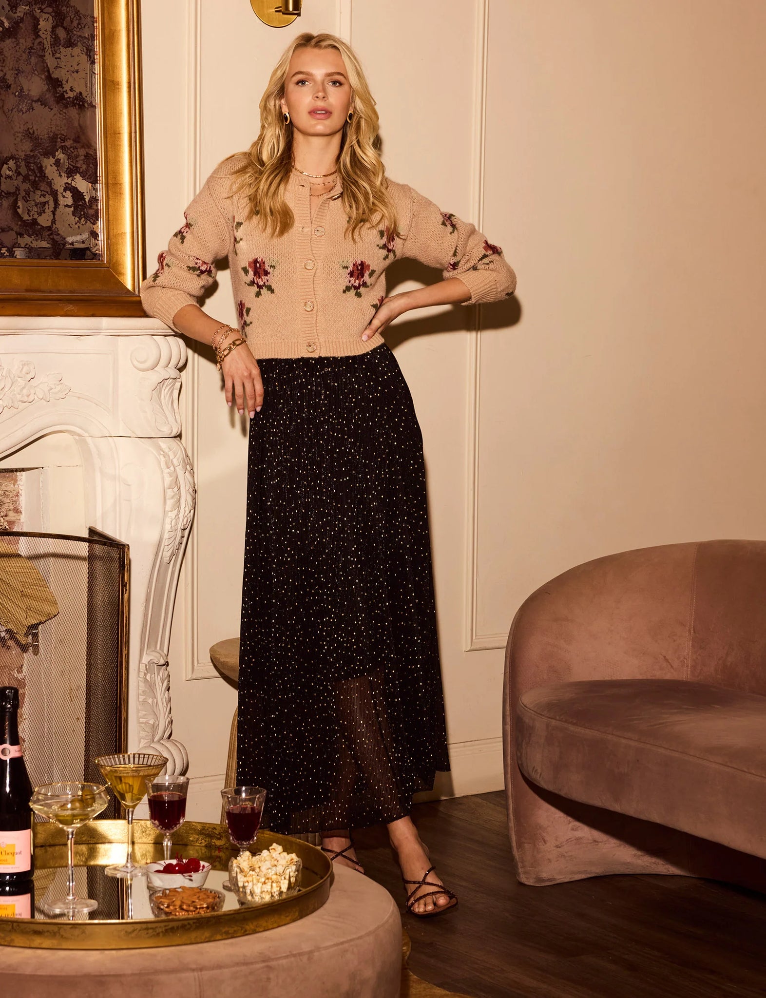 The Louis Cardi is one of our favorites this season. It has a super, cozy, relaxed fit and crew neck. It features pretty, novelty buttons and a rosette jacquard pattern throughout.