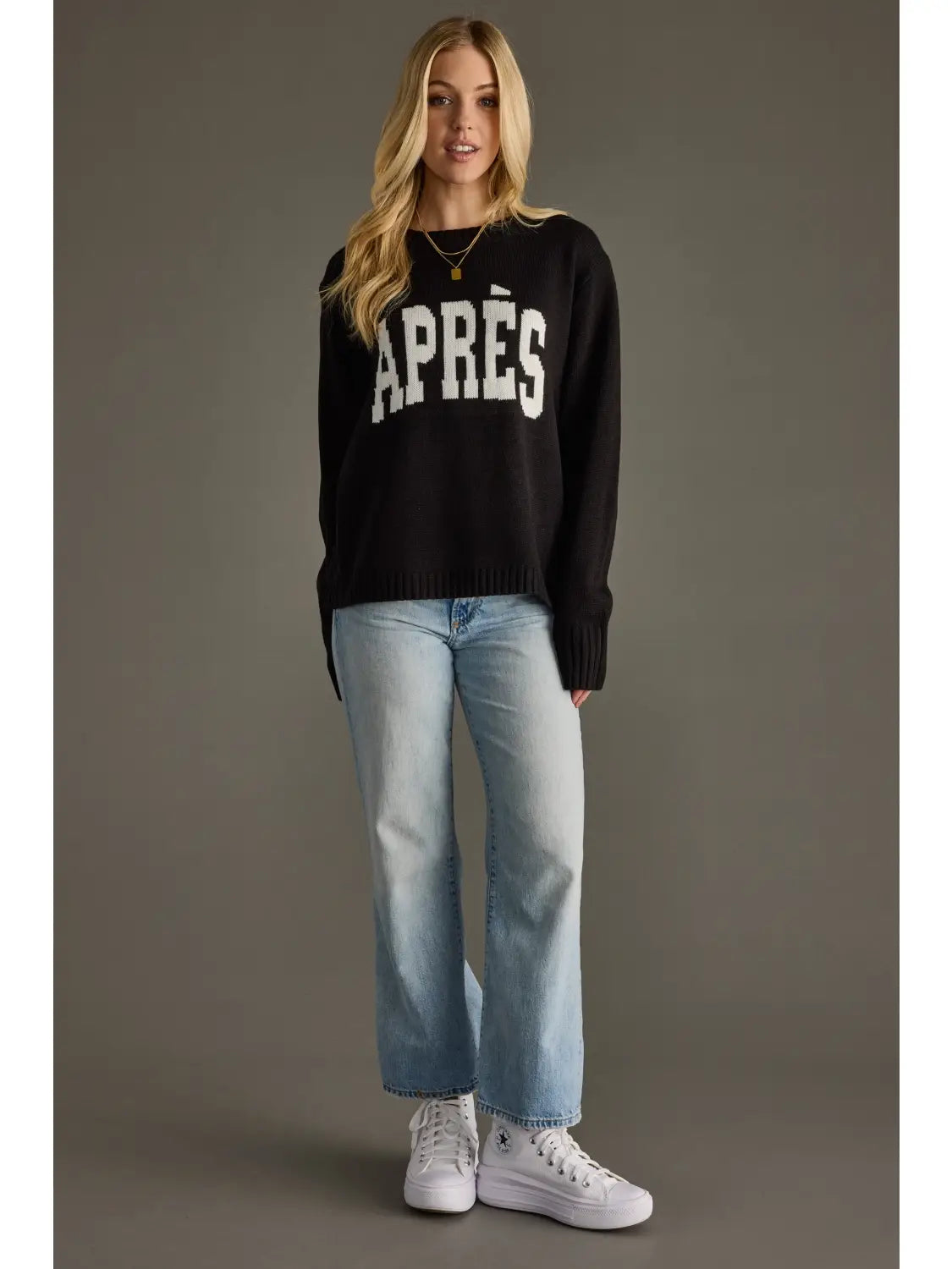 Black knit sweater White "APRES" text on the front 100% Acrylic
