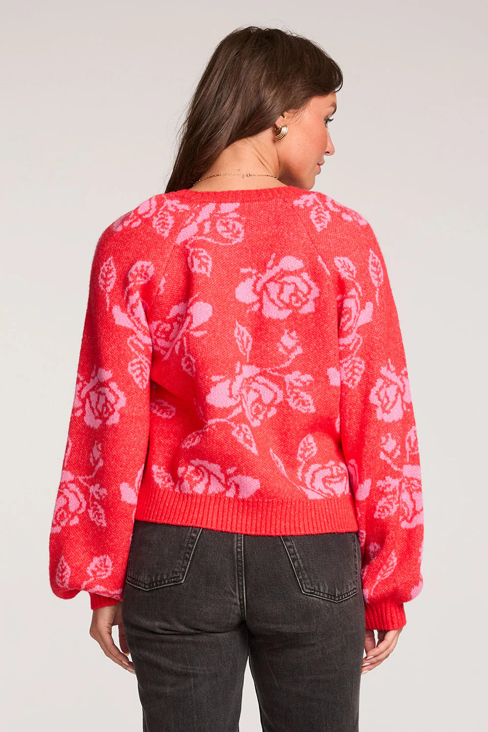 The Noele Vintage Red Sweater combines a high neckline and dramatic gigot sleeves with a cropped silhouette for a flirtatious yet elegant look.