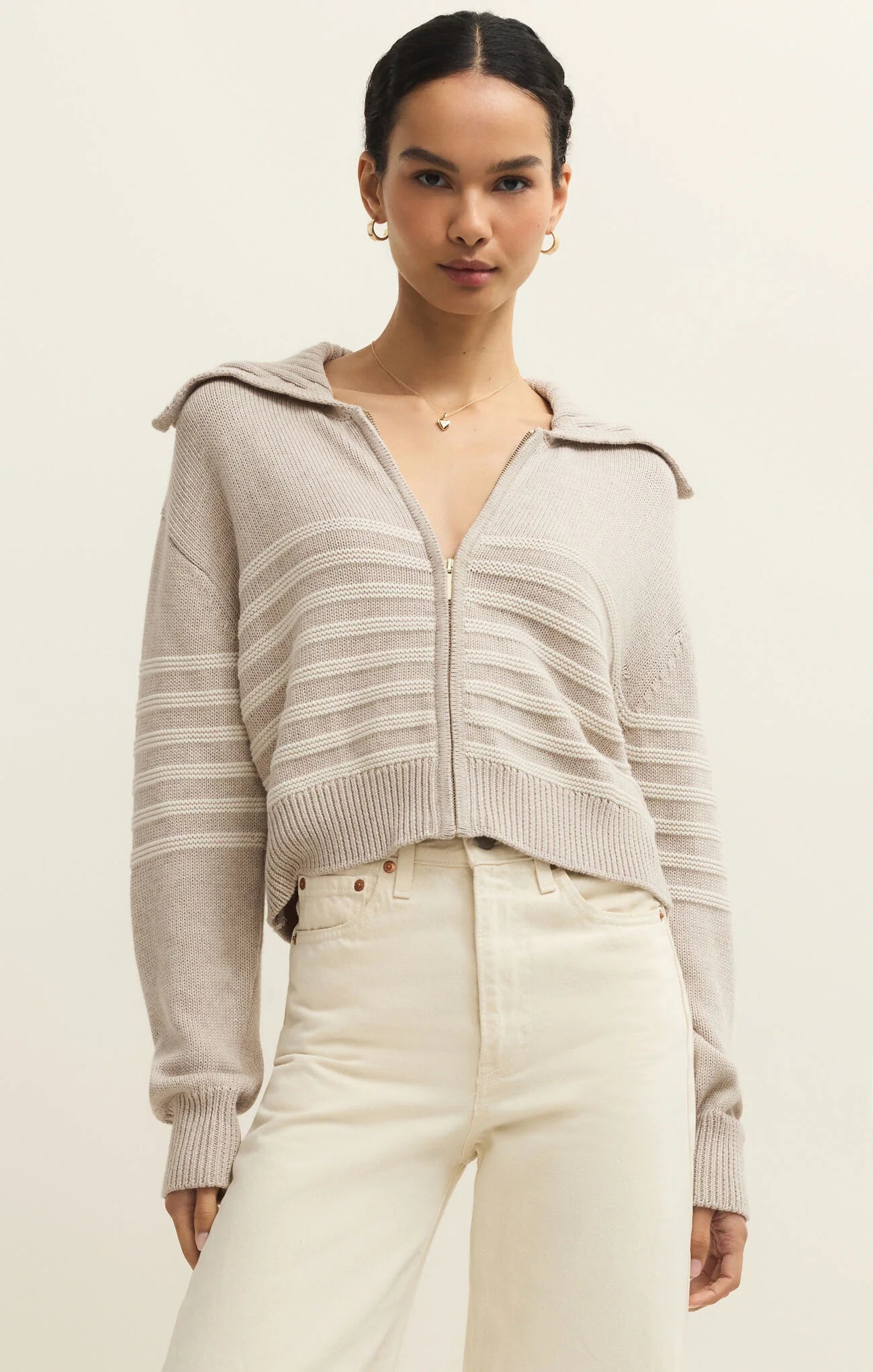 Made with our signature Sienna Yarn fabric, this 100% cotton sweater is perfect for all seasons. The stripe and large collar detail elevate this cozy top making it easy to dress up or down. Pair with light denim or even your favorite trousers.