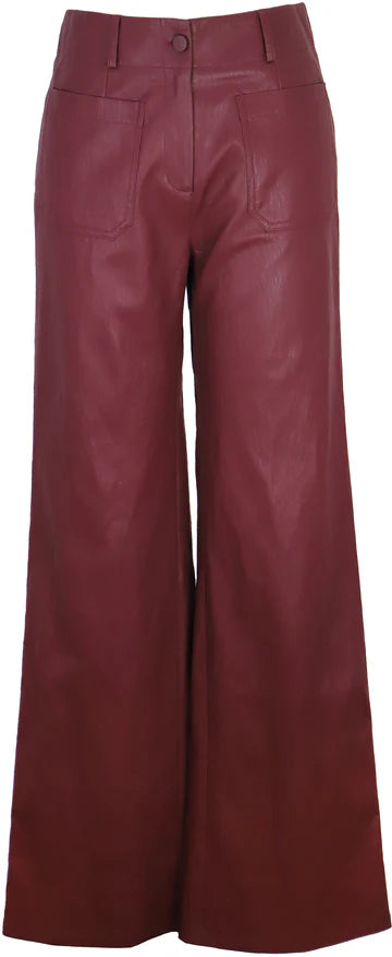 Elevate your wardrobe with the Reeve Leather Pant, featuring a high-rise silhouette and wide-leg design for effortless sophistication. Crafted from faux leather, these pants combine style and comfort, while the button closure and front pocket details add refined touches. Perfect for making a polished statement from day to night.