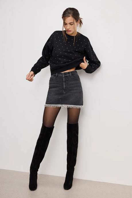 GOOD AMERICAN- DENIM CRYSTAL TRIM SKIRT