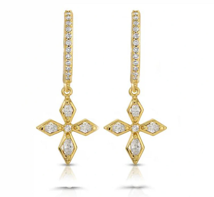 SKN- CZ PAVE DANGLE HUGGIE EARRINGS