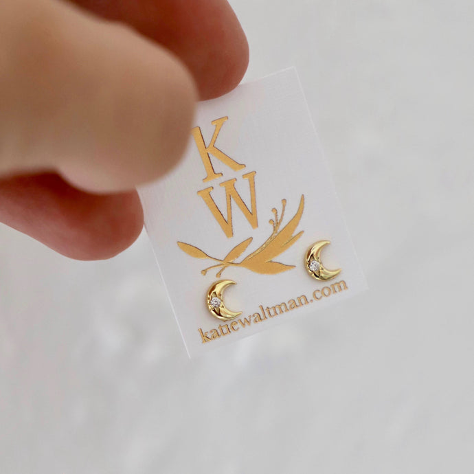 Katie Waltman Jewelry - SHINY CRESCENT WITH CZ STUD