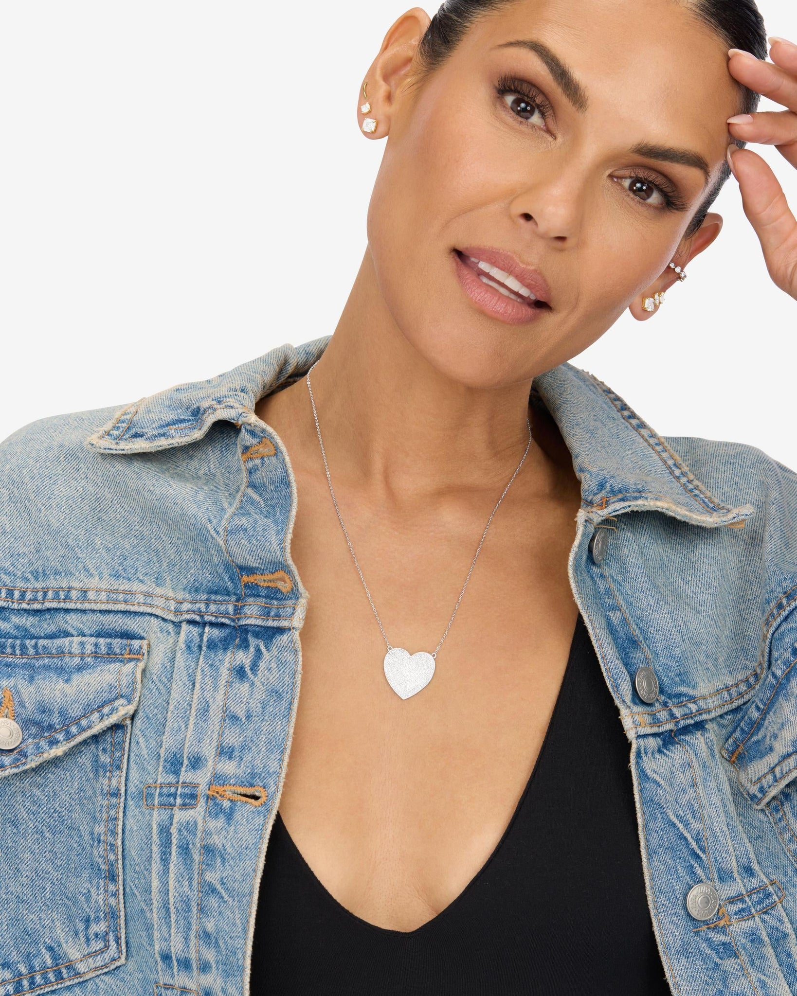 A Melinda Maria classic reimagined. Say a BIG “I Love You” to yourself with our XL You Have My Whole Heart Pavé necklace. Add it as a loving layer to carry love with you wherever you go.