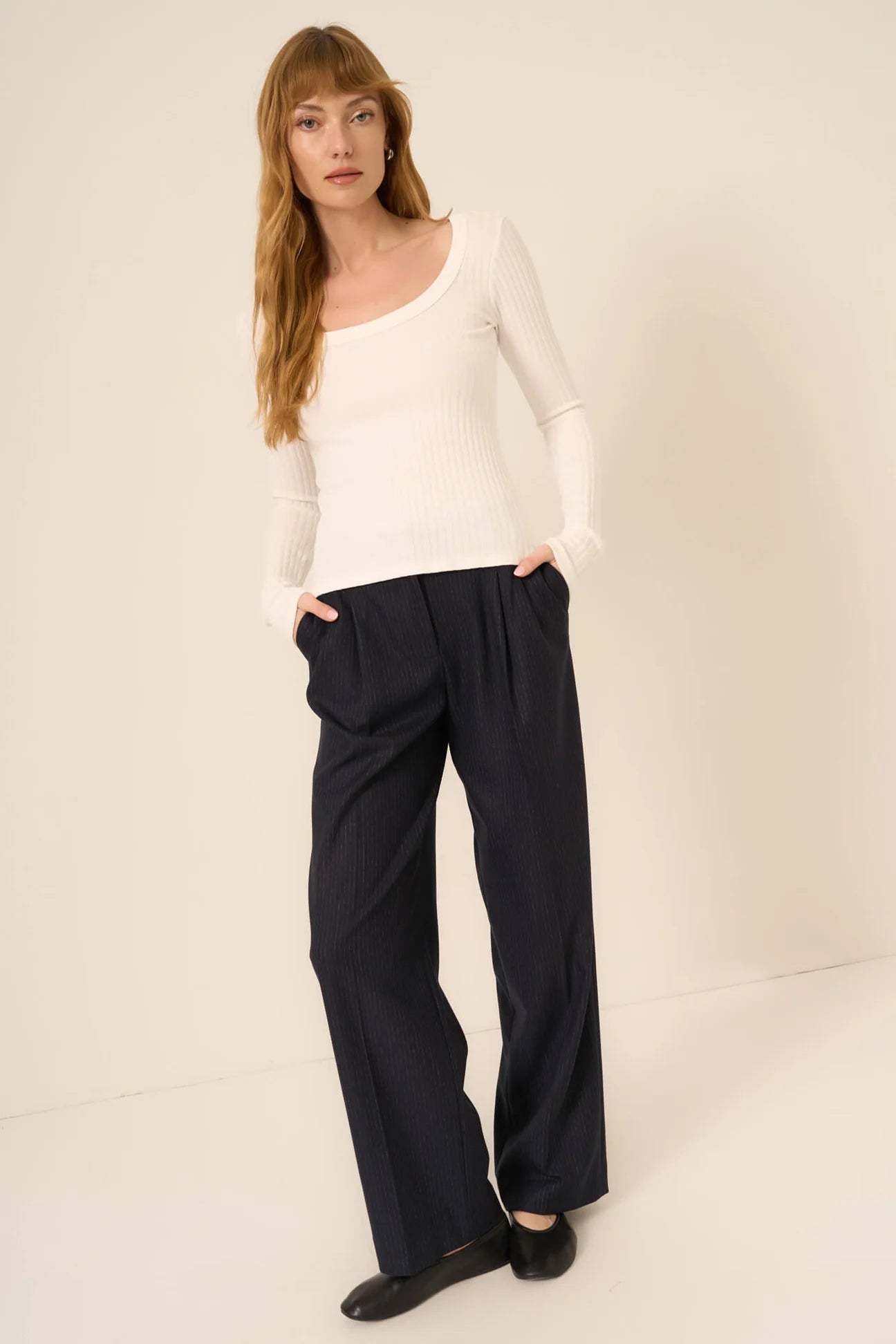 Our What's The Scoop Washed Rib Long Sleeve is the perfect blend of fashion and comfort, thanks to our iconic sweater rib fabric and washed-dye technique. The wide rib fabric, scoop neck, and fitted silhouette keep this long sleeve looking tailored while still feeling comfy.