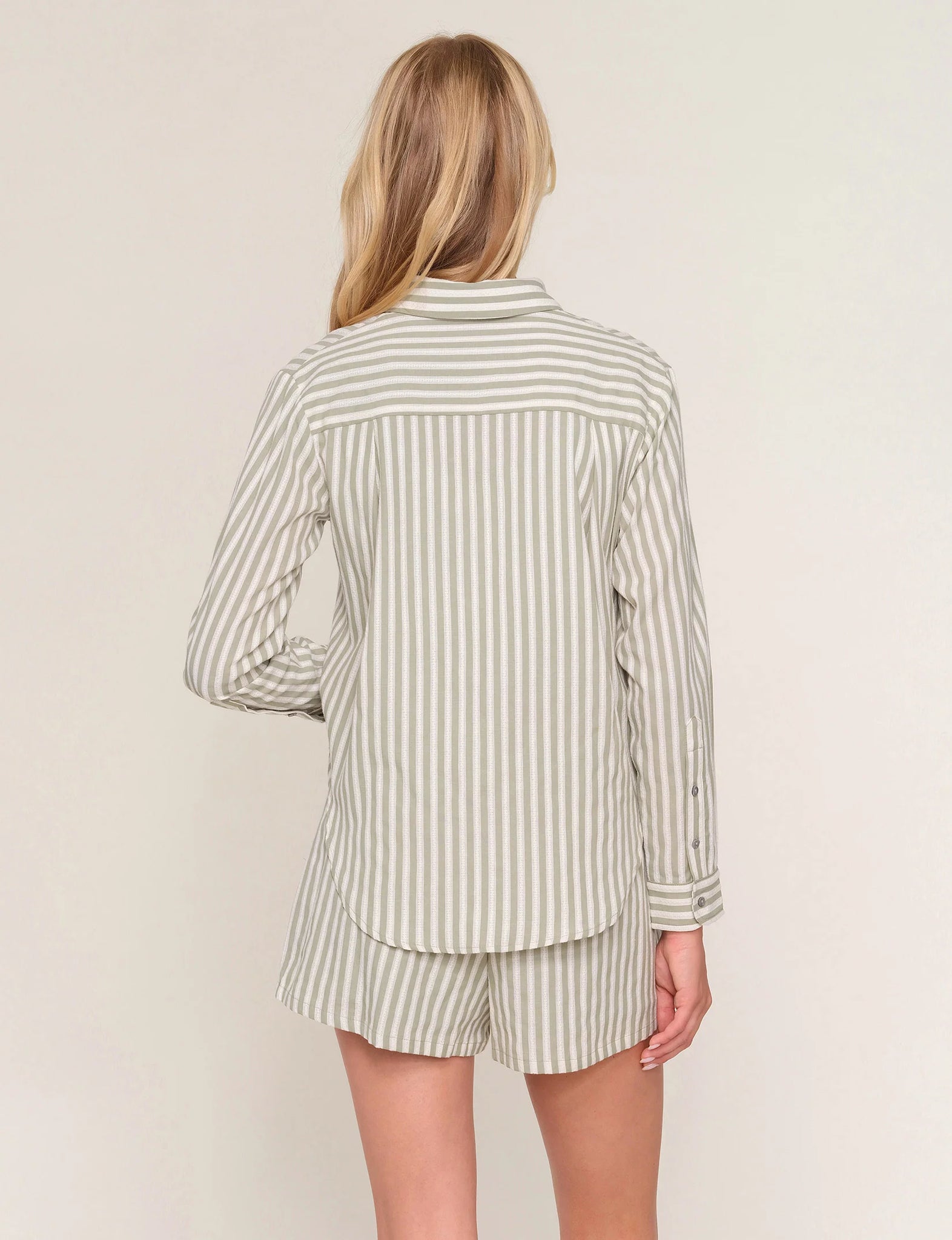 Three pieces, infinite possibilities. Mix and match the button-up, tie waist shorts, and cropped tank to create your perfect look. Timeless olive tones ensure this set becomes a go-to staple that works with everything in your closet.