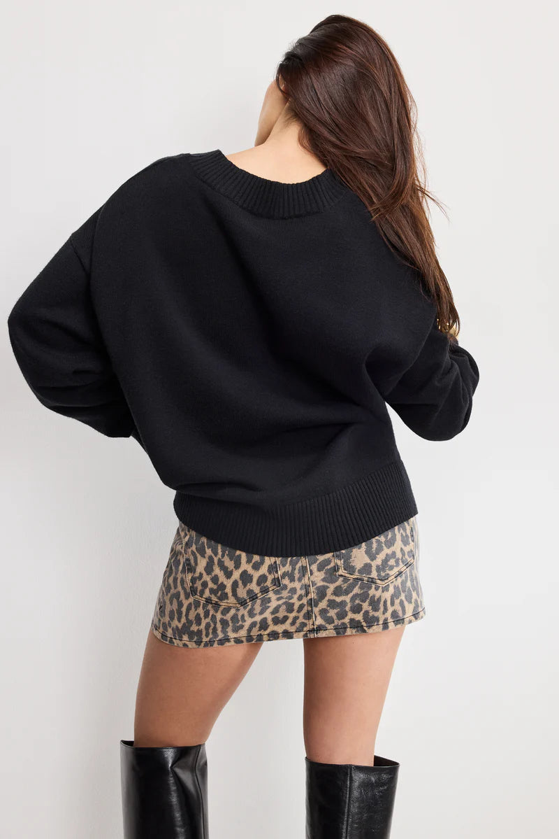 Clean lines and a low neckline give this ribbed sweater its appeal. It drapes effortlessly over the body and layers easily under anything. Simple, confident, and ready for anything.